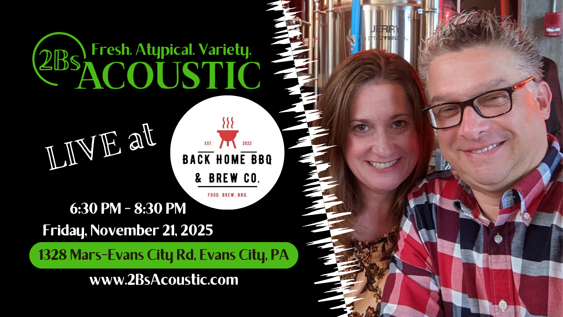 2Bs Acoustic hosted by Back Home BBQ & Brew Co.1328 MArs-Evans City Rd.