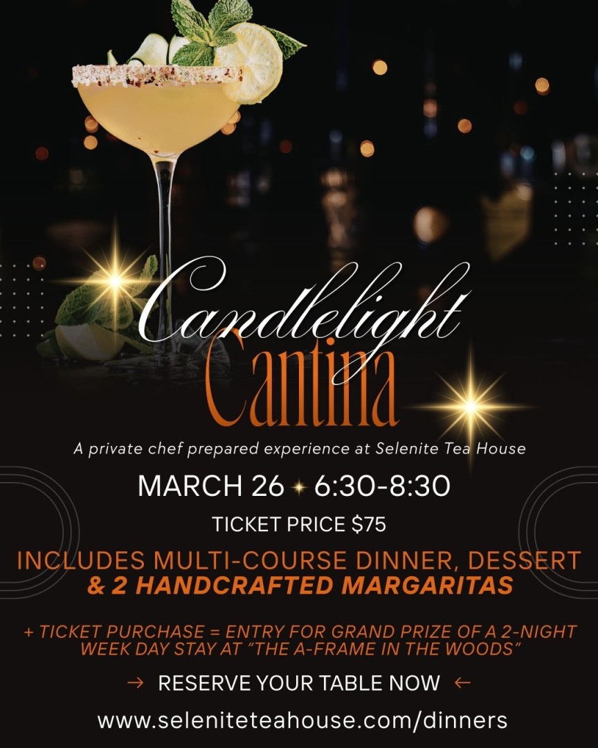 Candlelight Cantina - four course ticketed dinner at Selenite Tea House160 Monks Rd.