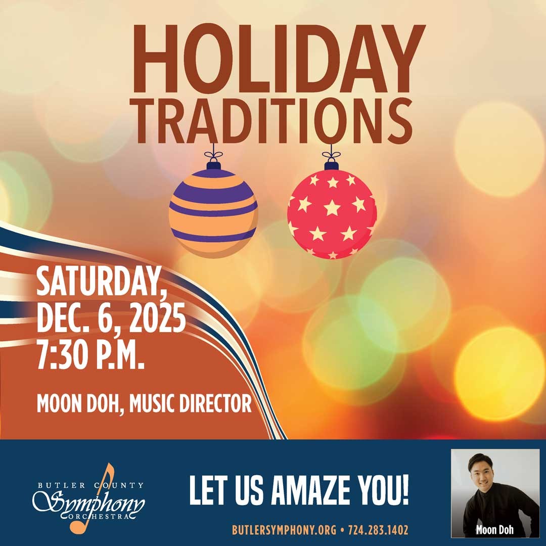 Celebrate the magic of the holiday season with our annual Holiday Traditions! Enjoy a delightful selection of festive favorites, from beloved carols to classic symphonic arrangements that capture the spirit of the season alongside the wonderful voices of your community choir. Bring your family and friends to create lasting memories together!
