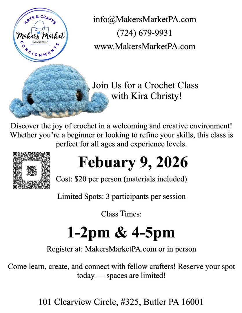 Join Us for a Crochet Class with Kira Christy!101 Clearview Circle 325