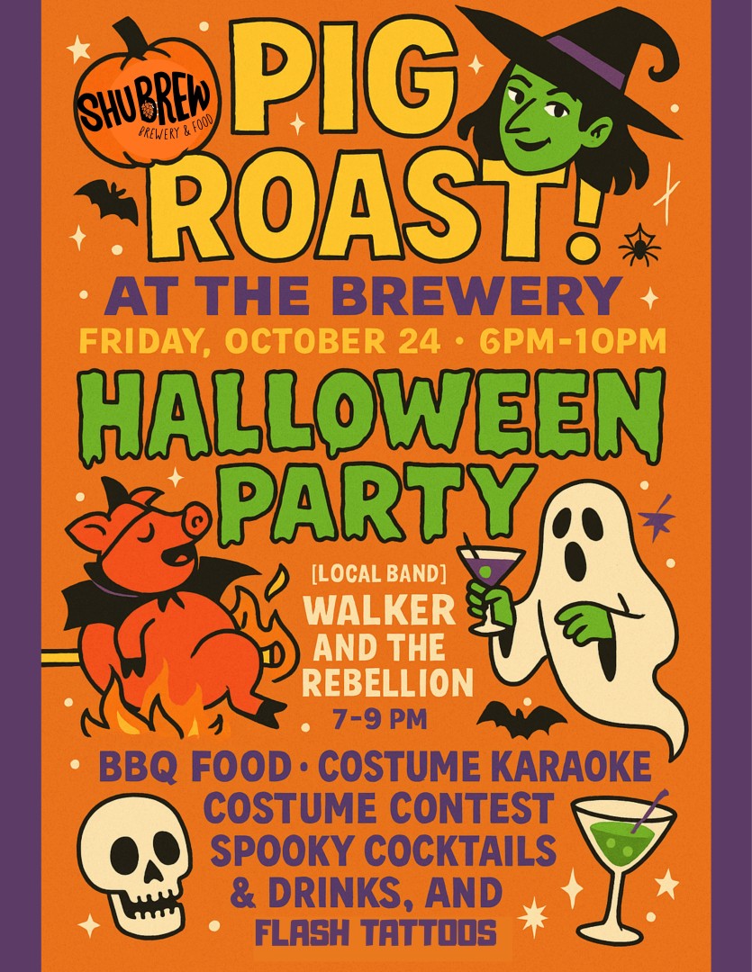 Join us at the Brewery in Harmony for our annual Halloween Party! We'll be doing another pig roast with all the sides, costume contests, spooky cocktails, pumpkin beer, flash tattoos, live music, and costume karaoke.