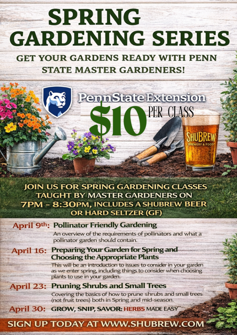 We’ve partnered with the Penn State Extension Master Gardeners of Butler County to bring you a Spring Gardening Series right here at ShuBrew!